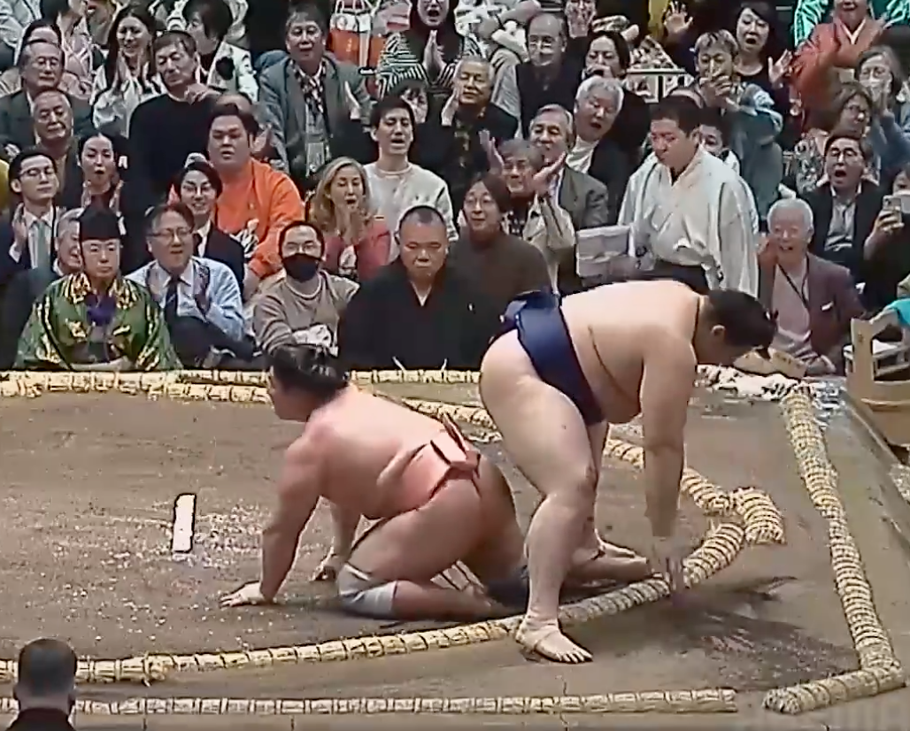 OVERALL SUMMARY: Hatsuyama lost again–I assume he was waiting for a day where I could watch his first-Makuuchi-win interview on NHK. Asahakuryu appears to be the new up-and-comer sensation, not Hatsuyama. His stablemates both won; Asanoyama won his ex-Ozeki face-off with Mitakeumi, and Asakoryu disposed of Tomokaze. Hoshoryu, notably, lost to Yoshinofuji, who’s also on my fantasy team, so that was great–but that means that (with respect to all the other 3-0 guys) Aonishiki and Onosato are currently the leaders of the tournament. Also, I love Yoshinofuji and I’m psyched for the win, but I very much do not like seeing Hoshoryu limp a little on that knee. Just one more gift, sumo gods! Please let him be okay. He gets Ura tomorrow, and Yoshinofuji gets Onosato. Our Maegashira crowd has narrowed down to Shishi, Asahakuryu, Abi, and Oshoma, a pretty small group. Good luck to them all (but mostly Shishi and Asahakuryu) continuing on in the basho.